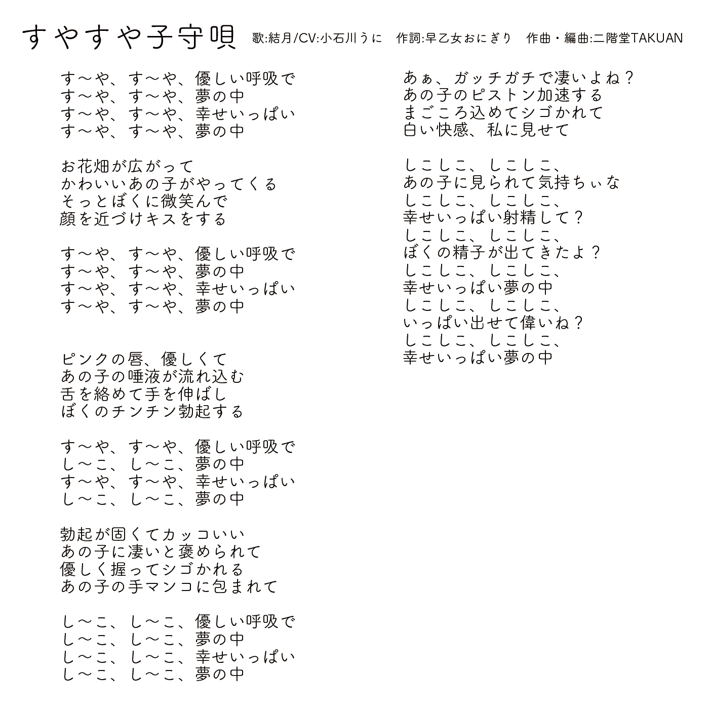 すやすや子守唄〜エッチな子守唄〜 RJ403252 072LABOミュージック 小石川うに 纯爱/甜蜜 治愈 淫语 轻度H 低语 评分:4.56 发布:2022-07-31 WAV 01 すやすや子守唄.wav 预览 下载 02 すやすや子守唄~アカペラ版~.wav 预览 下载 03 すやすや子守唄~地上波OKバージョン~.wav 预览 下载 04 すやすや子守唄~カラオケ~.wav 预览 下载 01 すやすや子守唄.mp3 预览 下载 02 すやすや子守唄~アカペラ版~.mp3 预览 下载 03 すやすや子守唄~地上波OKバージョン~.mp3 预览 下载 04 すやすや子守唄~カラオケ~.mp3 预览 下载 artwork01.jpg 预览 下载 artwork02.jpg 预览 下载 歌詞カード.jpg 预览 下载 説明書.txt 预览 下载